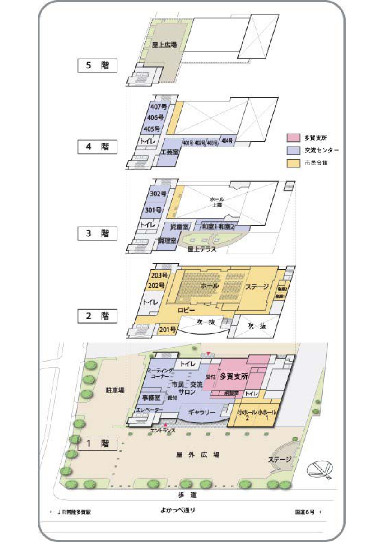 ※ 大久保交流センターは、多賀市民プラザの1階(受付窓口)、3階、4階になります。